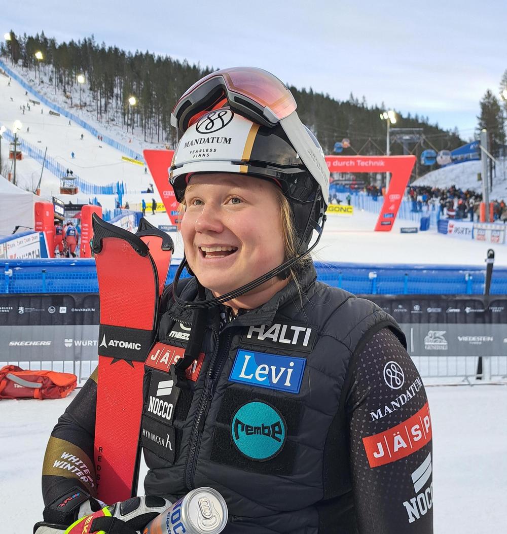 Jotain kummaa on tapahtumassa!!! Kaikissa haastatteluissa urheilijat kehuivat ihmeitä lumen kanssa tehneitä järjestäjiä, tunnelmaa Levillä ja lopuksi jopa katsojia. Pakkasta ja lumentuloa odoteltiin. Molempia tuli ja liiankin kanssa. Perjantaina hälytettiin facessa lisäporukkaa poistamaan pehmyttä lunta juuri jäädytetystä kisarinteestä. Kotimatka alkoi 22 asteen pakkasessa. Katsojat julkitoivat asiantuntemustaan reagoimalla väliaikoihin ja lopputulokseen oikealla tavalla - huokaillen tappiota ja riemuiten hyvää tulosta. Levi Blackin jyrkänteen loppuosassa kilpailija on katsojalta hieman katveessa. Tuleminen viimeisiin käännöksiin aloittaa pauhun ja kärkipaikkaa osoittava vihreä lukema aiheuttaa räjähdyksen. Mieletön fiilis!