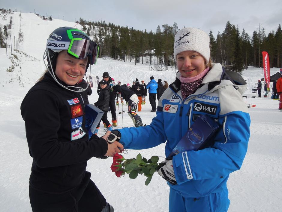 - Nyt on pohjapisteet hankittu ja huomenna on minulle vielä paremman lajin kilpailu, totesi huojentunut Erika Pykäläinen lauantain pujottelukisan jälkeen. Pykäläinen pujotteli kahdeksanneksi ja sai FIS-pisteitä 33.62. Hyssiläinen piti lupauksensa ja laski sunnuntain suurpujottelussa seitsemänneksi, josta irtosi FIS-pisteitä 29.53. Kovavauhtisessa suurpujottelussa hyvinkääläinen Julia Toiviainen oli kahdeksas ja sai pienen parannuksen FIS-pisteisiinsä. Myös molemmissa Levin pujotteluissa Toiviainen paransi FIS-pisteitään.