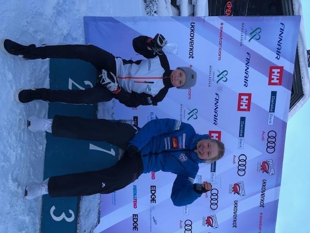Rukan alppiakatemian porukassa urheileva, HySSin Emil Keränen tuli pitkältä kisareissulta Keski-Euroopasta suoraan Sallaan. Ensimmäisessä pujottelukisassa Keränen verrytteli seitsemännelle sijalle. Sunnuntain pujottelussa vauhti parani ja Keränen sijoittui kakkossijalle. – Oli tosi mukava tulla kilpailemaan tänne Sallaan. Täällä on mukavan rento meininki, hyvä kisarinne ja pujottelukin kulki yllättävän hyvin. Keski-Euroopassa laskin tammikuussa16 kisaa, pääasiassa suurpujottelua, jossa kerran pystyi laskemaan alle omien FIS-pisteiden. Aika vähän päästiin treenaamaan, mutta kisat olivat kovatasoisia. Rinteet ihan ok-kunnossa ja lähtönumerotkin siedettäviä. Odotukset olivat korkealla, hyviä tuloksia en saanut aikaiseksi, joten pettymyksen puolelle kokonaisuus jäi. Nyt tuntuu taas alppihiihto mukavalta, vaikka ensimmäisessä laskussa käsi takertui johonkin enkä pystynyt nostamaan kättä ollenkaan. Lääkehoito ja onnistunut toinen lasku vähensivät tuskaa, totesi Keränen palkintoseremonian jälkeen.